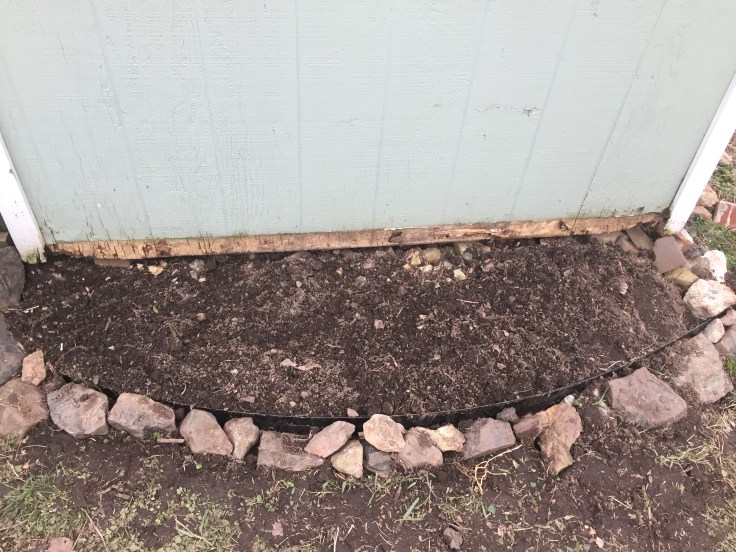 The front flower bed has edging and liner installed to prevent grass and weed growth.