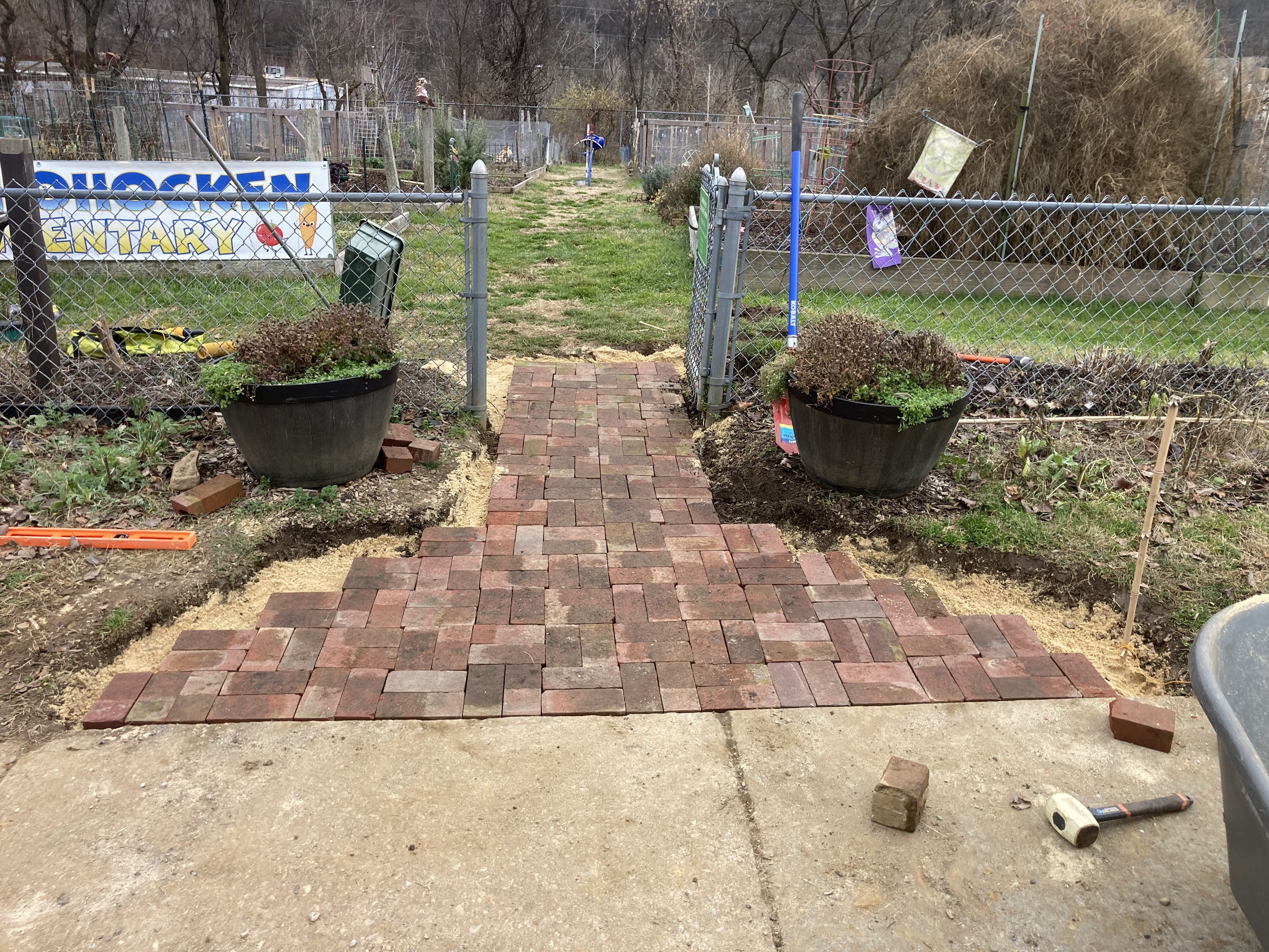 A big thanks to Stefanos & John for greatly improving the CCG entrance! On a rainy day, this was a muddy way to enter the garden and now it’s a beautiful walkway with donated and repurposed bricks.